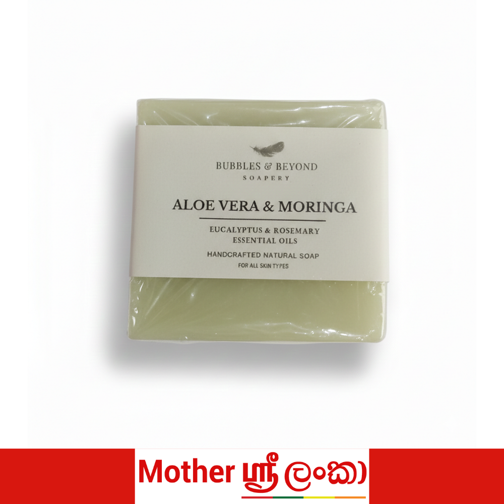 Indulge in the soothing care of our Aloe Vera & Moringa Handmade Natural Soap, carefully crafted to cleanse gently while bringing a sense of freshness and balance to your daily routine.