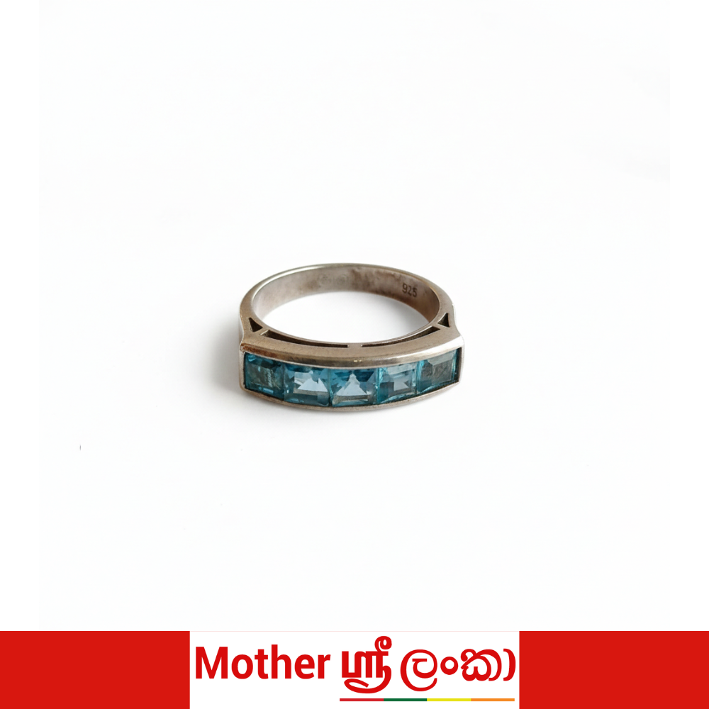 The Celeste Horizon Blue Topaz Ring is a study in clean geometry and luminous color. A row of precisely cut blue topaz stones is seamlessly set in a sleek, structured band, creating a continuous ribbon of cool, crystalline brilliance. The stones display a refreshing aqua-blue tone, catching the light with refined clarity and subtle depth. Crafted in polished white metal, the setting enhances the vibrancy of the gemstones while maintaining a modern, architectural silhouette. Elegant in its simplicity, this ring lends itself beautifully to both professional refinement and evening sophistication. Worn alone or stacked with complementary bands, it offers a contemporary yet timeless expression of fine gemstone jewelry.