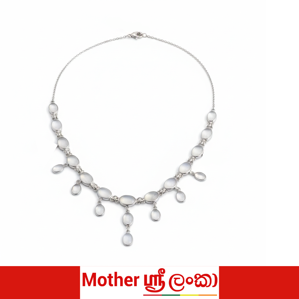 The Celeste Moonstone Cascade Necklace (Half) offers the same luminous elegance as the full design in a lighter, more delicate silhouette. Featuring oval-cut moonstones set along a fine silver-toned chain, this half style is accented with graceful drop details that add soft movement and shimmer. Each moonstone reflects a subtle iridescent glow, creating a refined statement that is perfect for both special occasions and elevated everyday wear. Timeless, feminine, and effortlessly sophisticated.