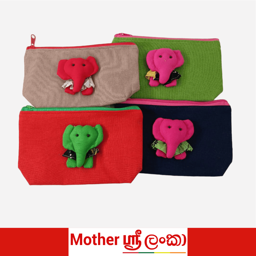 Add a playful touch to your stationery with these charming handcrafted pencil cases, proudly made in Sri Lanka. Each piece features a soft fabric body paired with an adorable 3D elephant design, carefully stitched by skilled local artisans. Designed for both style and function, these cases are perfect for storing pens, pencils, makeup, or small daily essentials. The secure zip closure keeps your items safe, while the vibrant colors and unique patterns make each piece a standout accessory. A beautiful blend of practicality and cultural craftsmanship, these pencil cases also make thoughtful gifts or travel keepsakes.