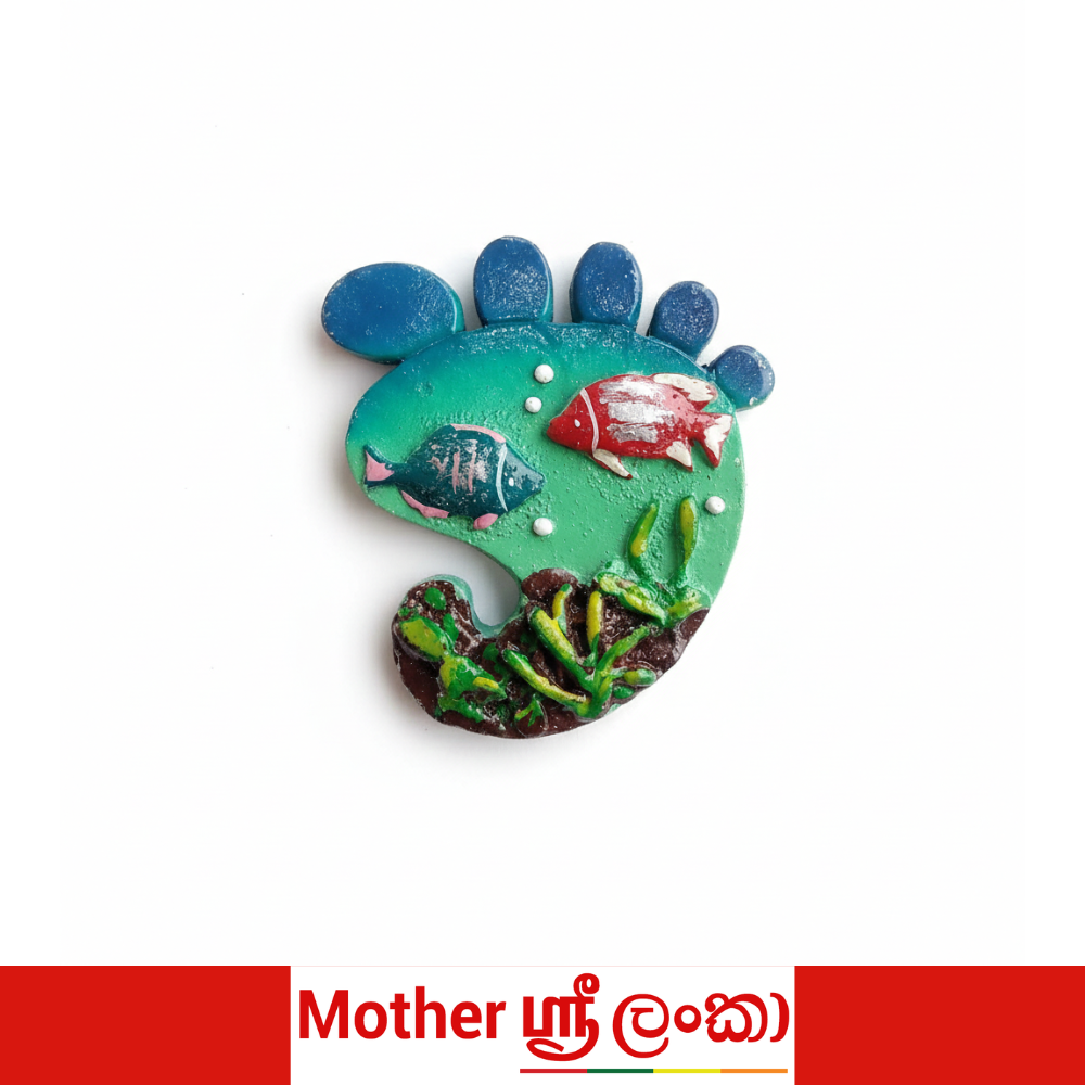Bring the beauty of Sri Lanka’s tropical seas into your home with this vibrant fish-themed fridge magnet. Designed in a unique curved shape, each magnet features detailed underwater artwork with colorful fish, coral, and sea plants that capture the charm of island marine life.