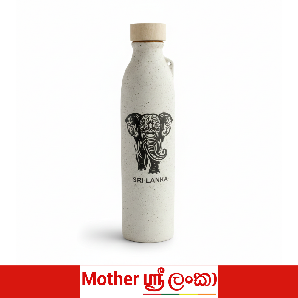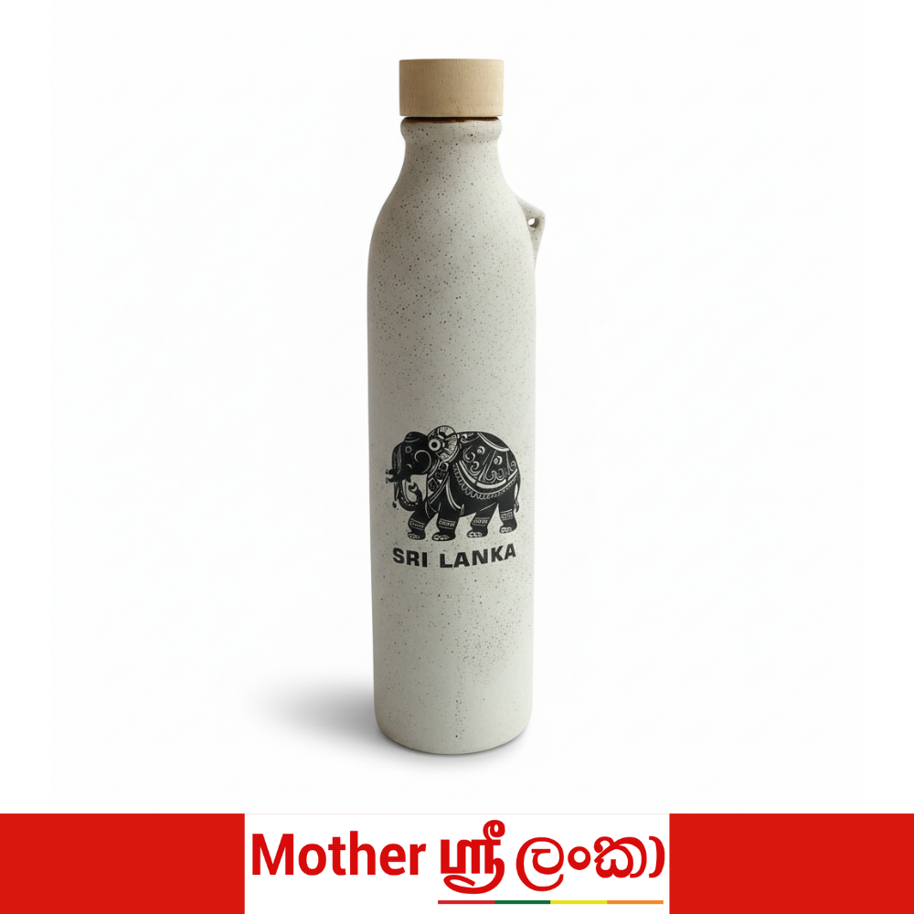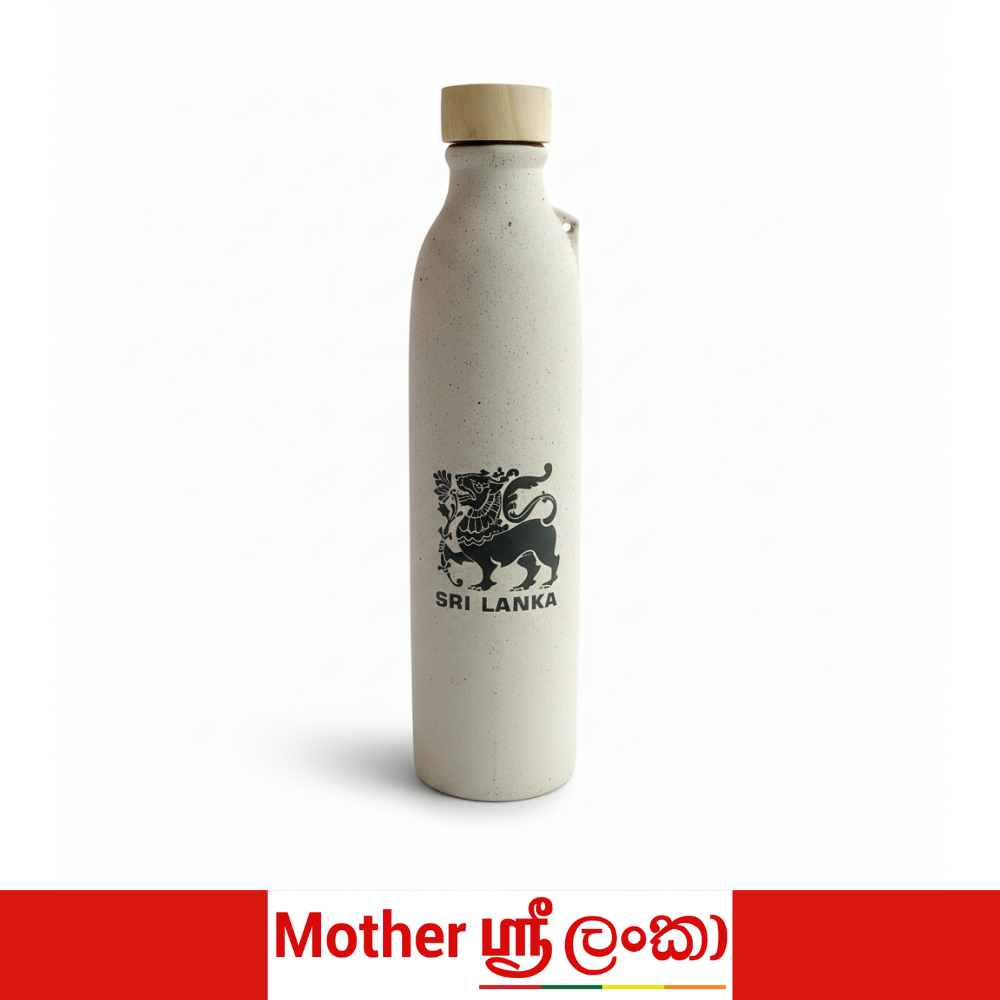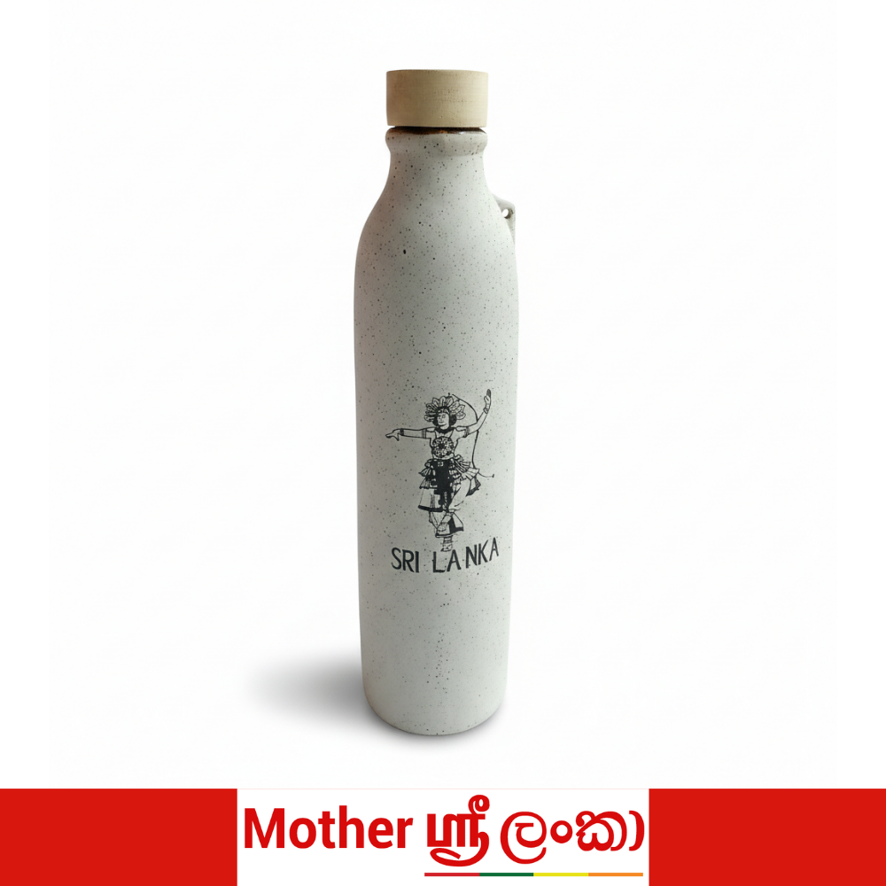 Celebrate Sri Lanka’s rich cultural heritage with this beautifully crafted ceramic water bottle, designed for everyday use with timeless style. Featuring a minimalist speckled ceramic body and a natural wooden screw cap, each bottle is adorned with a unique Sri Lankan-inspired illustration.