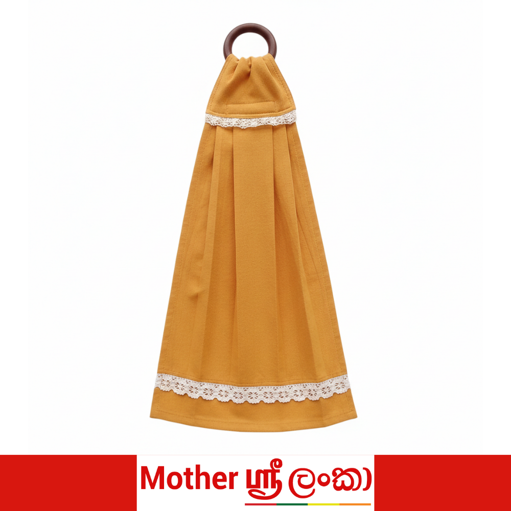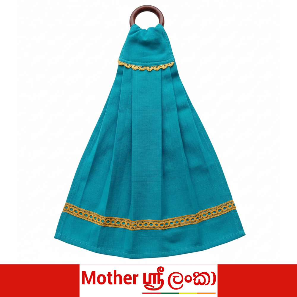 Add a touch of Sri Lankan craftsmanship to your kitchen with these beautifully handmade hanging kitchen towels. Designed for both style and practicality, each towel features a sturdy wooden ring for easy hanging on hooks, cabinets, or oven handles.